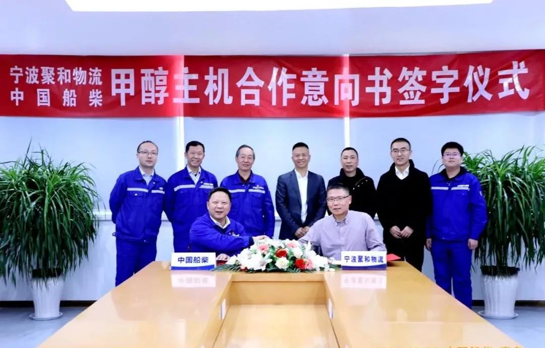 近日,中國船舶集團旗下中國動力子公司中國船柴與寧波聚和物流有限公司舉行甲醇主機合作意向書簽字儀式,中國船柴董事長張德林、副總經理楊小強,寧波聚和物流有關領導出席簽字儀式。
