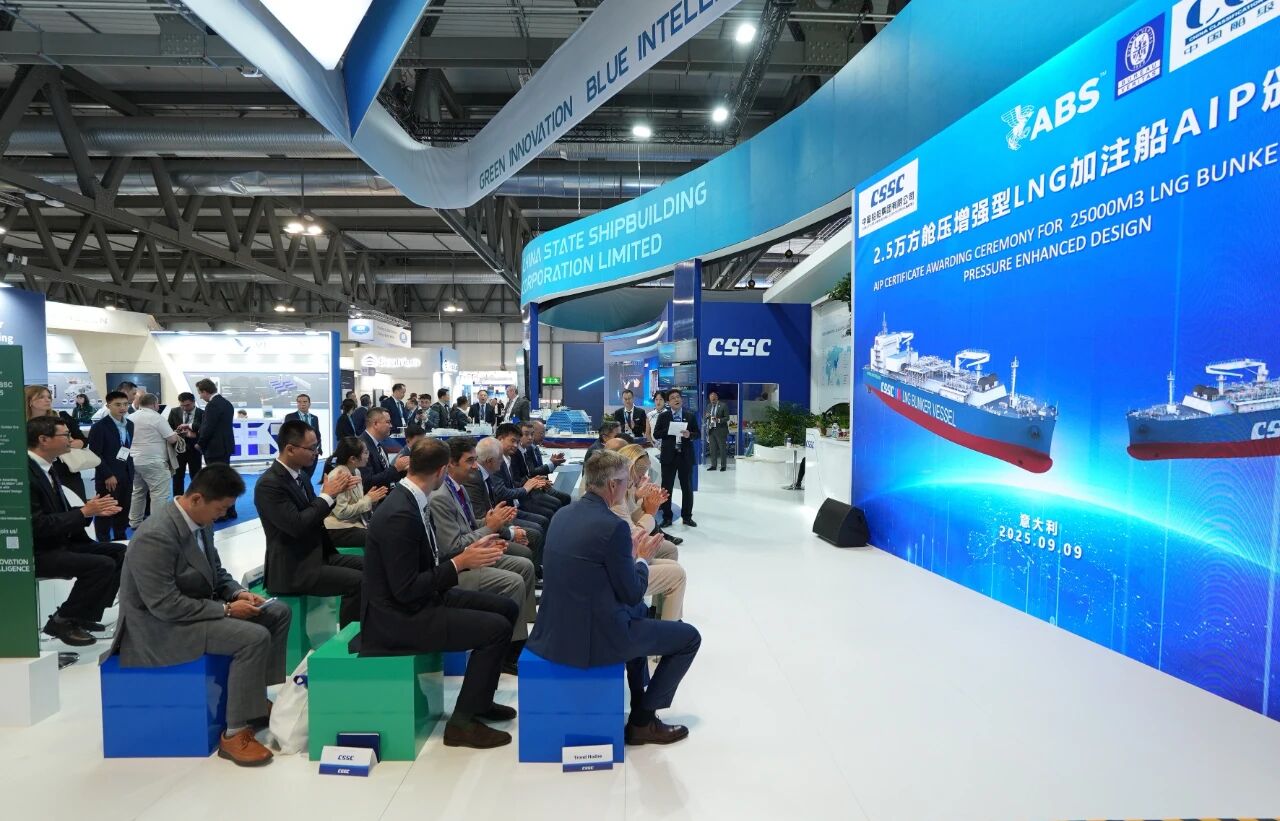 開展當天,中船集團舉辦江南造船五項革新船舶解決方案的AiP頒證儀式、滬東中華2.5萬立方米艙壓增強型LNG加注船AiP頒證儀式等專題活動,吸引了眾多國際船東、船級社、設備廠商等到場觀摩,與參展二級管理單位交流市場最新熱點并探討未來合作機遇。展會期間,中船集團還將組織舉辦 “全球服務網絡”說明推介會等多場市場開發(fā)專題活動,精準高效開展技術產品服務推介和品牌海外推廣。