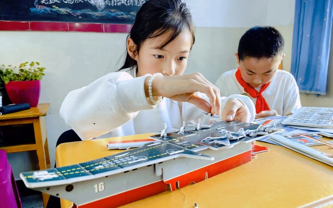 課堂特別設計趣味問答與互動實踐環(huán)節(jié)。問答環(huán)節(jié),學生們踴躍舉手搶答、主動提問;船模組裝實踐環(huán)節(jié),志愿者手把手指導學生對照圖紙拼接零件,當一個個船模成型時,孩子們臉上滿是收獲的喜悅,不僅直觀掌握船舶構造原理,更在動手過程中筑牢國防意識。此次志愿服務播下的“深藍種子”,或許將在未來生根發(fā)芽一一有人可能成為海軍戰(zhàn)士、有人或許成為工程師……我們志愿路,也將沿著瀾滄江脈絡,延伸向更遠的遠方。